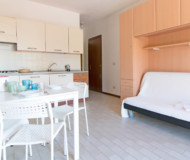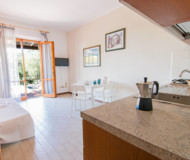 Monolocale 2 posti. Soggiorno con angolo cottura, letto matrimoniale, bagno con doccia, spazio esterno attrezzato.